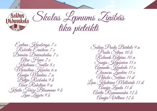 13. un 14. maijā 1.-8.klases un 10.klases piedalījās tiešsaistes nodarbībā par drošu un patīkamu atpūtu pie ūdens vasarā ” Zinām. Peldam. Droši” , kuras laikā atkārtoja un arī uzzināja no jauna, svarīgākos drošības noteikumus, kas jāievēro, lai vasaras atpūta būtu patīkama.