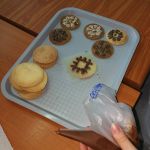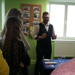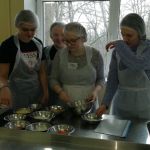 Š.g. 20. februārī 11.B klase kopā ar audzinātāju B.Kalvi-Vištarti devās uz Saldus tehnikumu viesos pie K. Evarsones mammas Sanitas Galbaliņas, kura pēc izglītības ir pārtikas tehnologs un tehnikumā māca jaunos pavārus un viesmīlības speciālistus. Tehnikuma pašpārvaldes dalībnieki mūs laipni uzņēma un izstāstīja par tehnikumā iegūstamajām profesijām, par pašpārvaldes darbu, savukārt skolotāja S.Galbaliņa izstāstīja kā kļuvusi par skolotāju Saldus tehnikumā. Tālāk devāmies uz mācību laboratoriju, kurā gatavojām pankūku picas. Gatavošanu izraudzīja un tajā asistēja tehnikuma topošie pavāri. Pēc picu gatavošanas, trauku nomazgāšanas piedalījāmies cepumu dekorēšanā,uzzinājām par šablonu izmantošanu dekorēšanā, par dažādu sēklu uzturvērtību un vērtīgajām īpašībām. Pēc ēst gatavošanas sēdāmies pie skaisti klāta galda, kur topošais viesmīlis/bārmenis Emīls Lemkens klasi cienāja ar tēju un stāstīja par galdu klājumiem, par piederumiem un to izmantošanu.Pēc maltītes E.Lemkens stāstīja par bārmeņa profesiju, kokteiļu gatavošanā izmantojamajiem traukiem un rīkiem, klases skolēni gatavoja bezalkoholiskos kokteiļus no ananāsu,greipfrūtu un apelsīnu sulas. Paldies par vērtīgo pēcpusdienu!