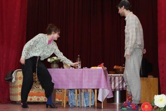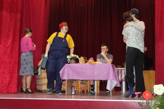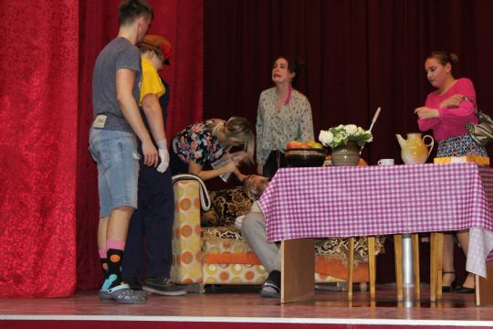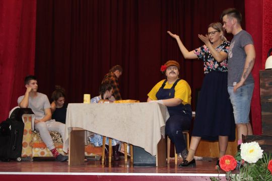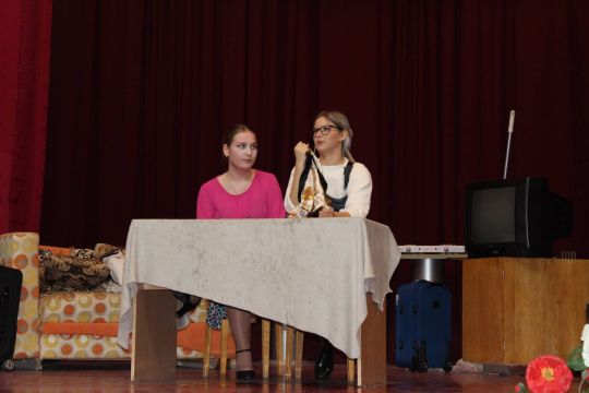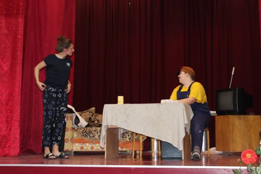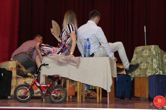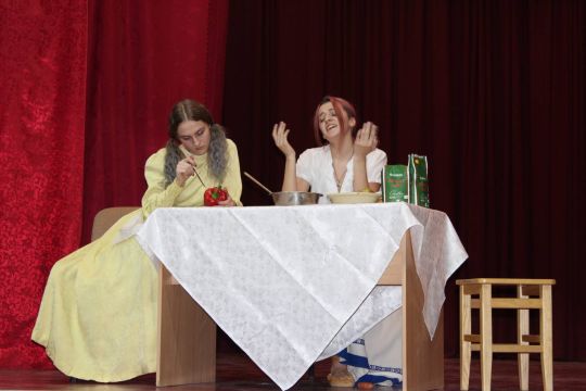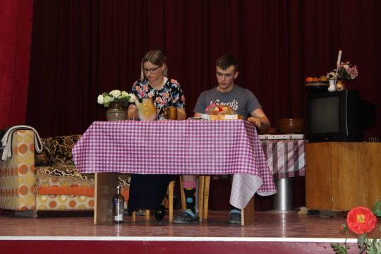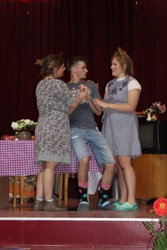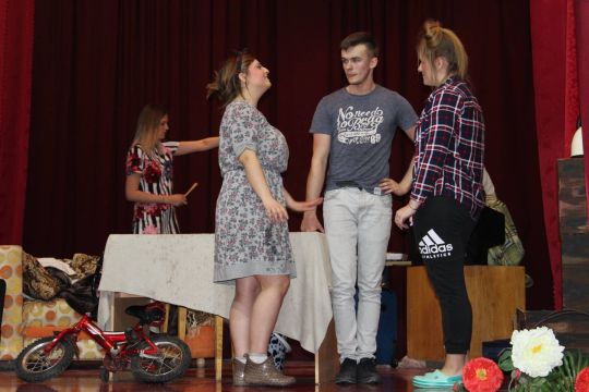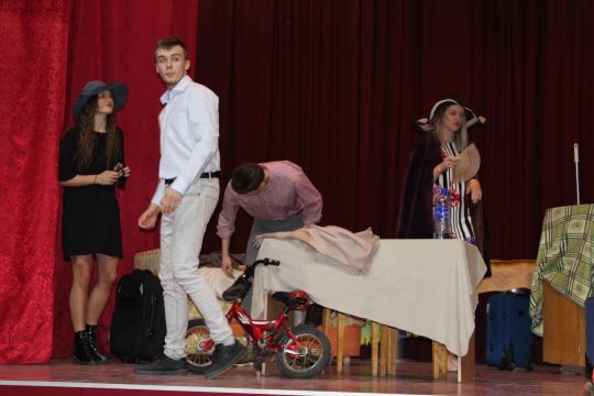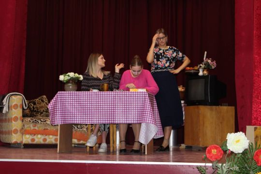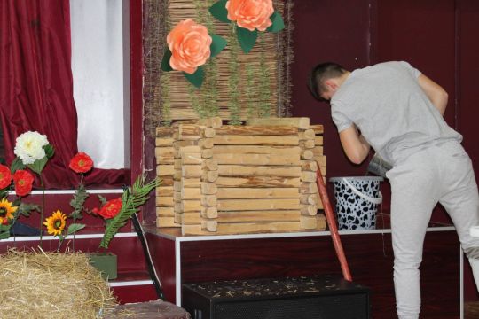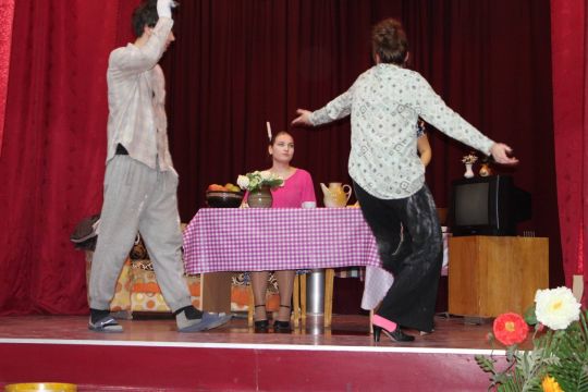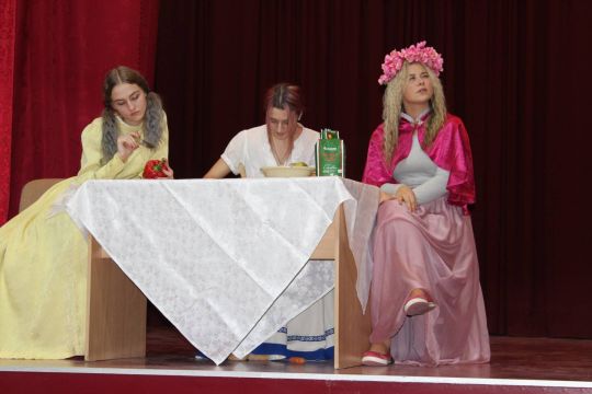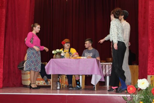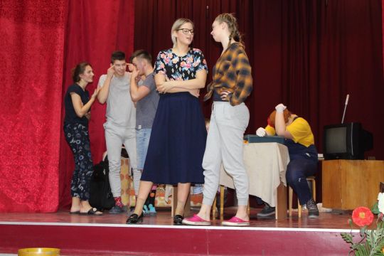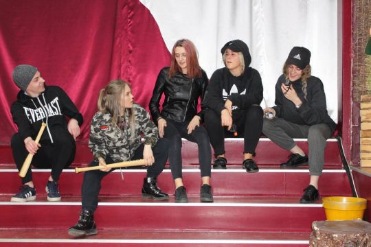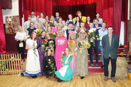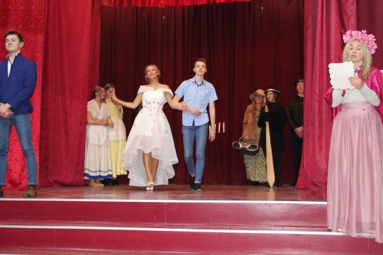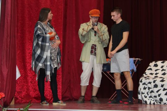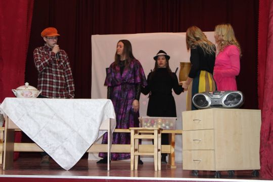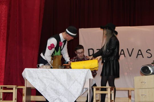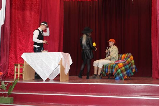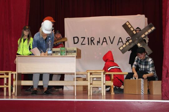 Par Dzirnavnieku Kaķīti un viņa meitām stāstīja 12. a klase, bet to kā pilsētnieki iedzīvojās laukos rādīja 12.b klase.