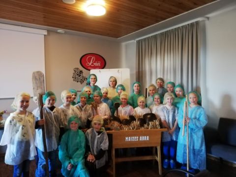 Skololēni devās ekskursijā uz maizes ceptuvi “Lāči”, kur ekskursijas laikā skolēni uzzināja par rudzu maizes vērtīgajām īpašībām, iepazinās ar maizes cepšanas procesu. Apskatīja maizes krāsnis, cepēju darbarīkus. Degustēja produkciju un paši izveidoja kliņģeri.