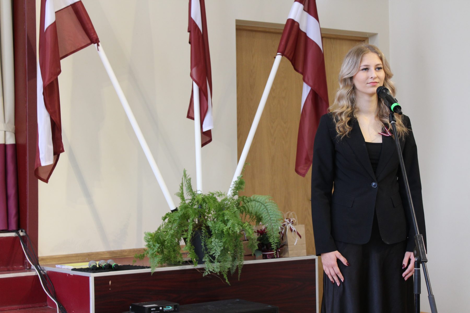 Paldies 11.klašu skolēniem- Leilai Patrīcijai Bulai, Montai Miķelsonei, Samantai Davidovai, Līgai Viviānai Grudulei, Paulai Vlasovai, Evelīnai Milčonokai, Lindai Vilnei, Katei Rozentālei, Dāvidam Aleksandram Dolotinam- radošo darbu “Ko domāja karogs?”autoriem, kuru darbu fragmenti atspoguļoja karoga domas laika ritumā!
