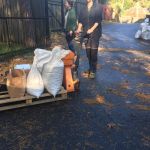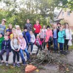 Labo darbu nedēļā 4.b klase grāba sakritušās koka lapas pie Skrundas un Lielās ielas krustojuma.
