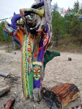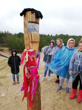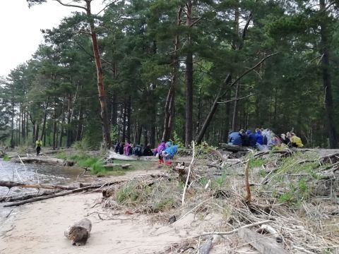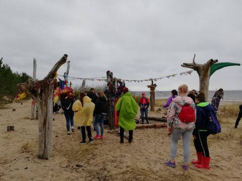 Ceļā līkumi ir pārsteidzoši, jauniešu izbrīnu raisīja ceļā sastaptie vides objekti, kas izrādās ir kāda Krievijā dzīvojoša mākslinieka Maksa Zolotuhina no kokiem izveidotas rituāla vietas “Šamanmistāna”, mums tās noderēja kā atpūtas vieta līdz Gaujas ietekai jūrai, kur bija paredzēta pusdienu pauze. Pludmale līdz tai bija izskalotiem kokiem nosēta. Gauja, pārsteidzoši mierīga, apkārt tikai upes grīva, jūra, vējš un nevienas ēkas, kas traucētu baudīt šo dabas ainavu.