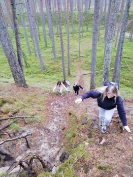Bijām nogājuši grūtāko ceļa posmu, aptuveni 7km pa ceļa segumu, kas slodzi dubultoja, jo pēdas grima gan slapjajā smiltī, gan meža sūnās. Bet no mūsu jauniešiem nebijām dzirdējuši nevienu nevaru, grūti, vai varam pa citu ceļu… Atlikušie 6 km līdz Carnikavas novadpētniecības centram jau bija tīrais nieks, caur ciematu, pa ceļam vērojot interesantus ielu nosaukumus- Ozona, Slāpekļa, Metāns, Radona. Kāpēc tādas būtu interesanti uzzināt! Tālāk gar dzelzceļa staciju, pāri garākajam gājēju tiltam pāri Gaujai! Pēdējie 200 ceļa metri mūs sagaidīja ar varenu lietusgāzi!
