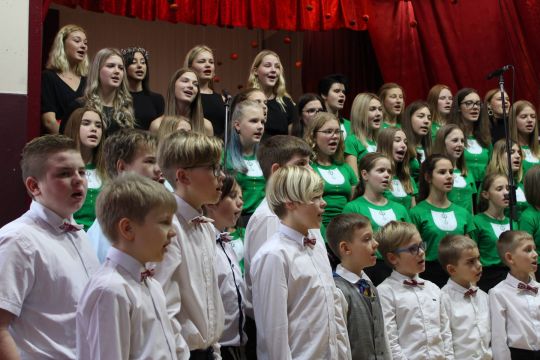 “Mana un Tava tautasdziesma, visiem viena un katram sava, skaidrais gara spēks, kas izdziedāts liek ietrīsēties ikviena latvieša sirdij.” Tautasdziesmas skaitīja 2.b klases meitenes- Tīna Kroļa, Daniela Kreišmane, Enija Cabule. Tautasdziesmas izdejoja Saldus vidusskolas deju kolektīva “Taurenītis”3.-4.klašu grupa un tautasdziesmas izdziedāja 2.-7.klašu zēnu koris, 5.-12.klašu meiteņu koris, meiteņu ansamblis un solisti.Tautasdziesmu nozīmi akcentēja 11.b klases skolēni Anna Līva Bārtule un Artis Tarvids. Paldies visiem koncerta veidotājiem!