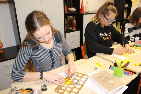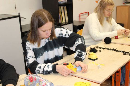 ” Mūsu pienākums bija kopā ar Arabellas mammu Kristīni Brišku veidot dekorācijas Ziemassvētku eglei, kas šobrīd izgrezno T/C ,, Akvārijs” telpas. Tā kā nākamais gads – 2020. gads- būs žurkas gads, mēs zīmējām, krāsojām, griezām un līmējām papīra žurciņas.