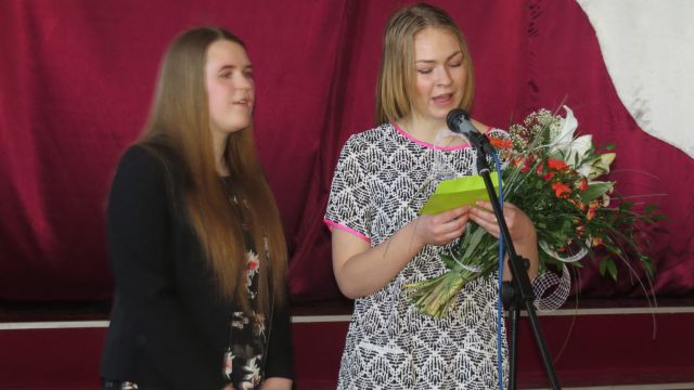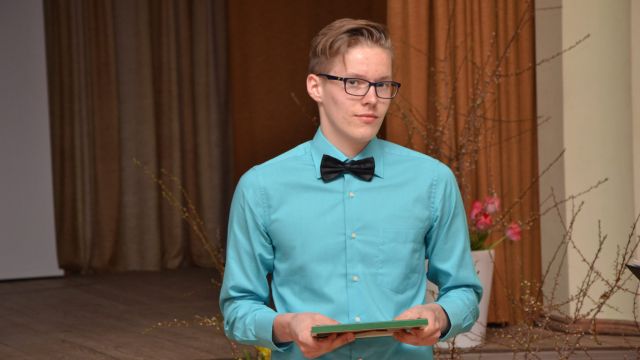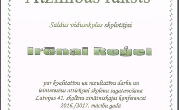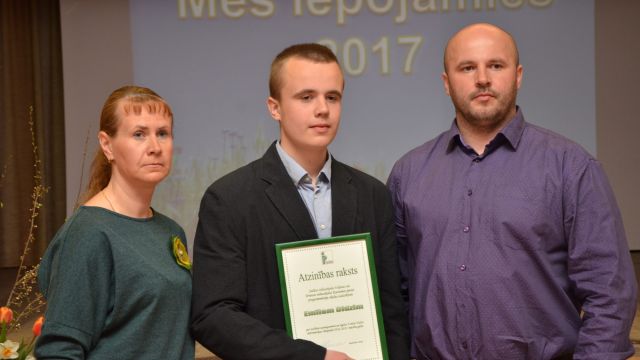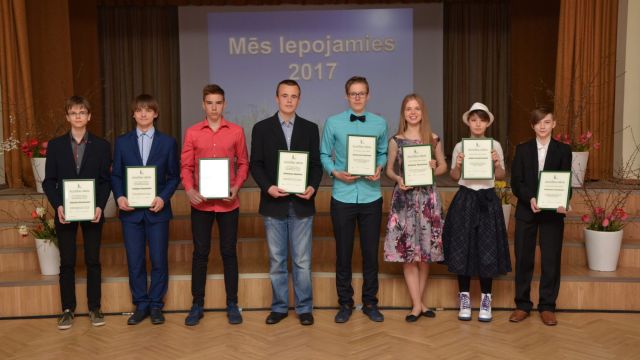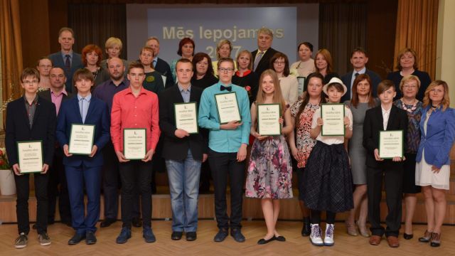 Saldus novada izglītības pārvaldes pasākumā “Mēs lepojamies” tika sumināti 11. c klases skolēns Roberts Šmits un 9.b klases skolēns Emīls Didzis, par augstiem sasniegumiem Valsts olimpiādēs un Zinātniski pētniecisko darbu lasījumos. Paldies teica arī skolotājai Irēnai Roģei un Emīla skolotājiem!