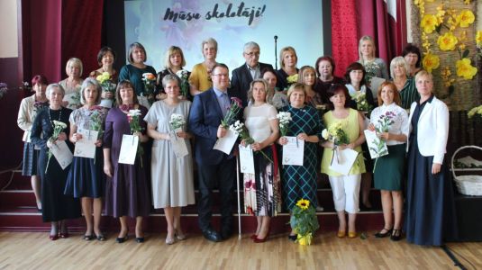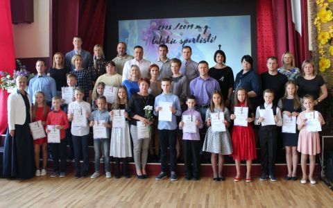 Paldies Jums, ka nesat Saldus vidusskolas vārdu novadā, Kurzemē un Valstī. Ka dariet to ar panākumiem! Mēs ļoti lepojamies ar visiem, kuri šajā mācību gadā guvuši panākumus starpnovadu, Kurzemes reģiona un Valsts olimpiādēs. Visiem, kuri papildus ierastajam mācību darbam, ar panākumiem aizstāvējuši savu Zinātniski pētniecisko darbus un ar visiem, kuri Saldus vidusskolu vārdu daudzinājuši sporta sacensībās. Pavisam kopā 83 skolēniem! Paldies Jums un Jūsu vecākiem! Paldies Mikam Dukuram par muzikālo dāvanu!