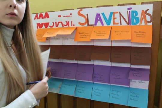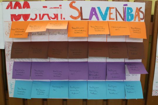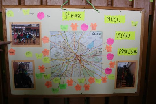 Projektu dienās turpinājām veidot ” 100 stāstus Latvijai” un iepazinām ” Manas karjeras iespējas Latvijā” . Rezultātā ir iepazītas vecāku profesijas, kādas profesijas varam iepazīt Saldū, 33 novada vietvārdi latviešu alfabētā, Saldus ielikts ” Mazā bilžu rāmītī”, izveidots veltījums tīrai Latvijai jeb ” Stāsts par tīru Latviju”, izpētītas karjeras iespējas teātrī un pēc 9.klases, izveidoti ceļojuma maršruti Latvijas iepazīšanai. Noslēgumā, ikvienam, projektu rezultātu prezentācijā bija jāatbild uz izzinošiem un interesantiem jautājumiem par ekspozīciju!