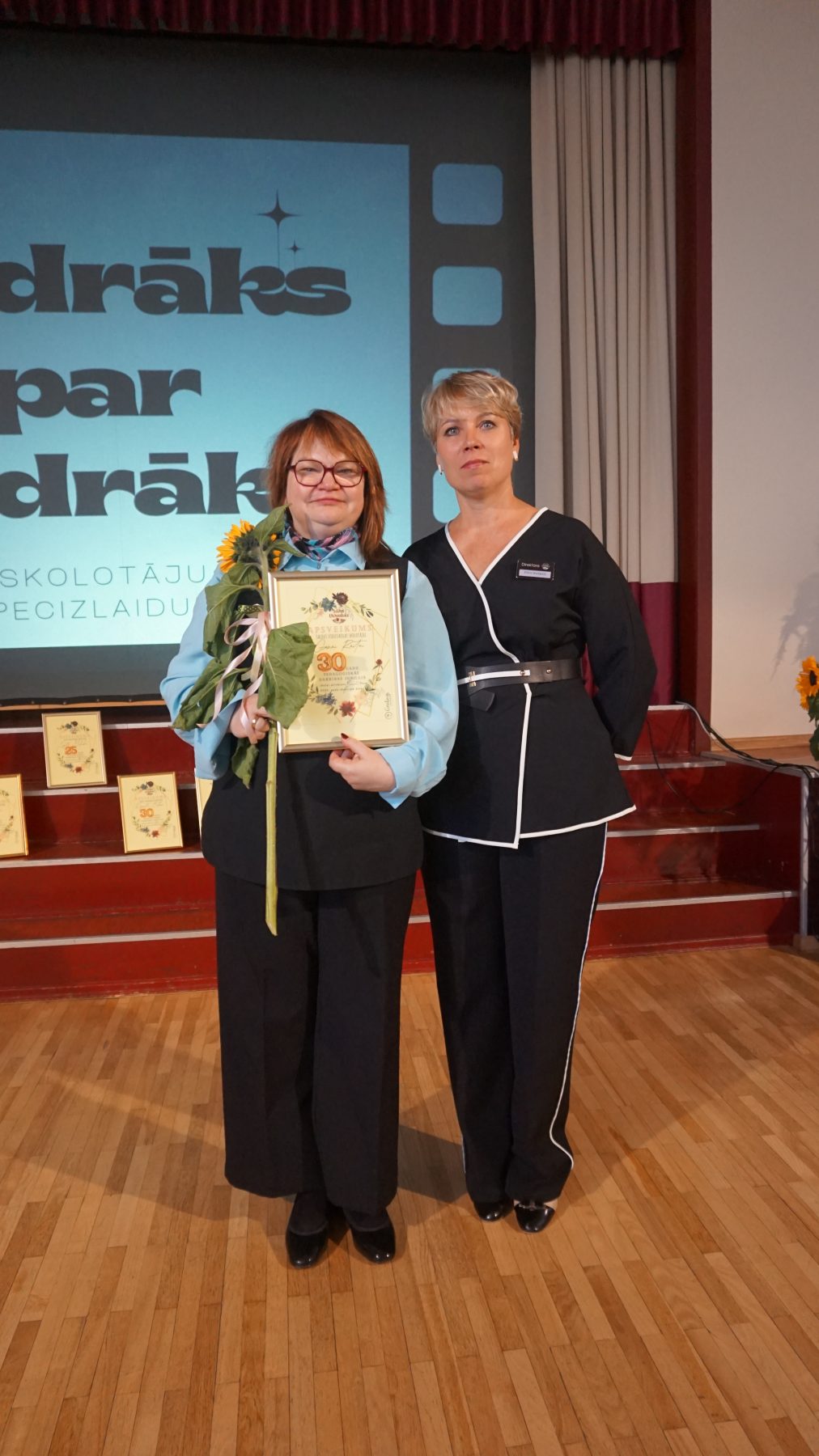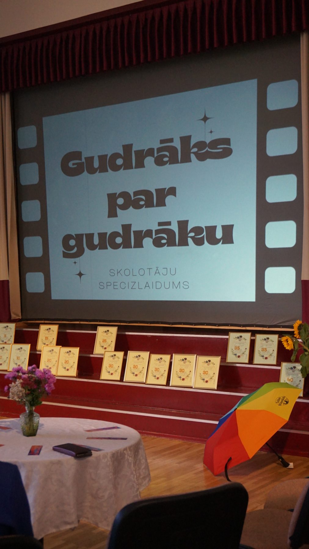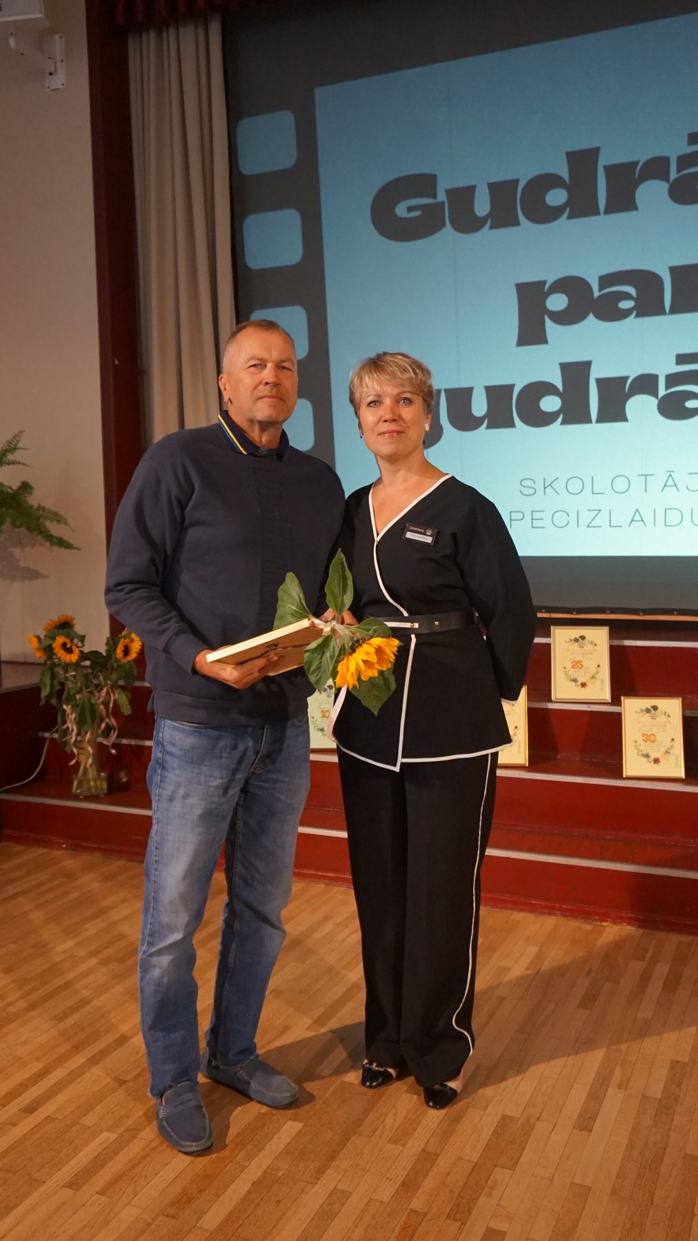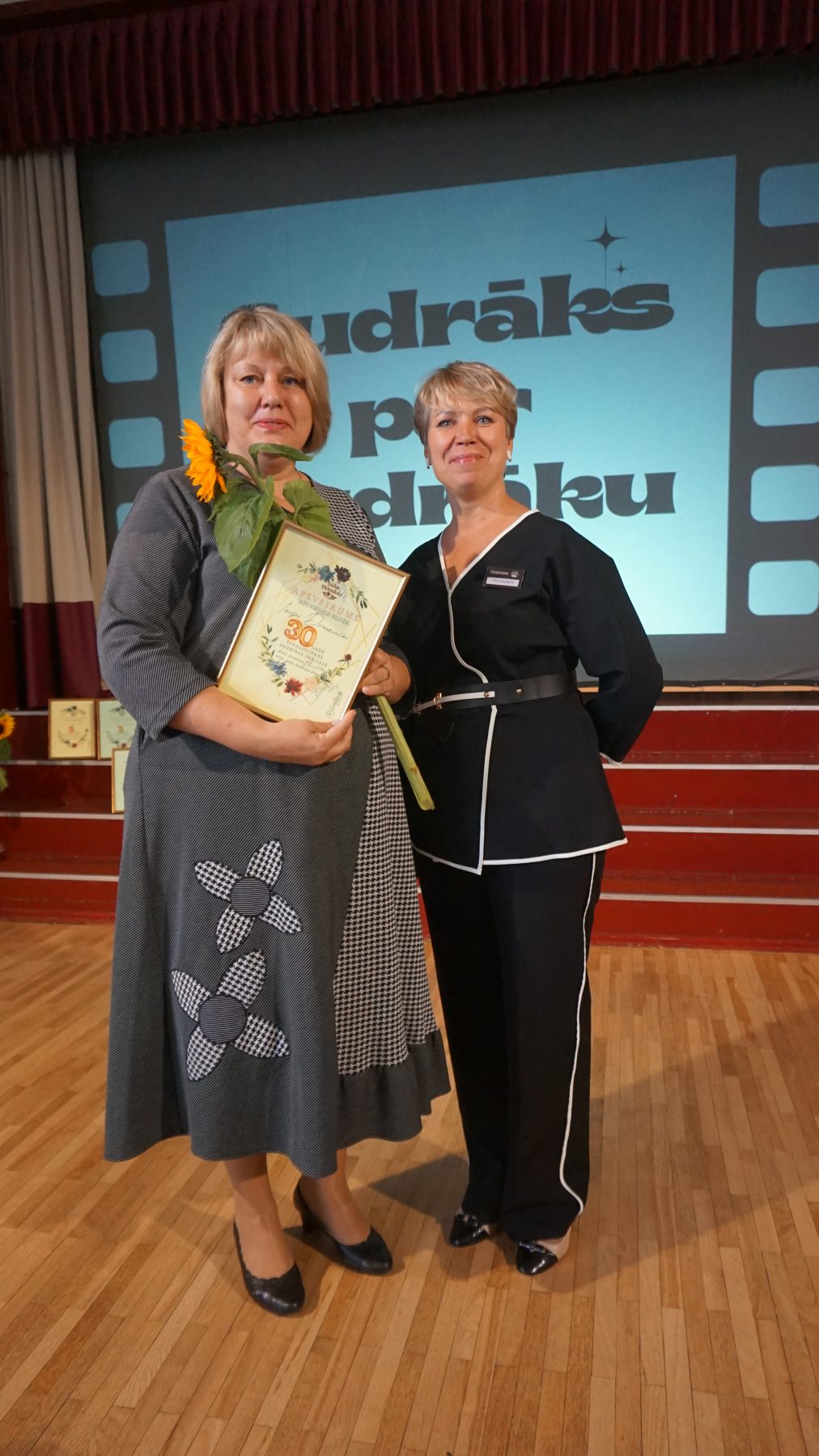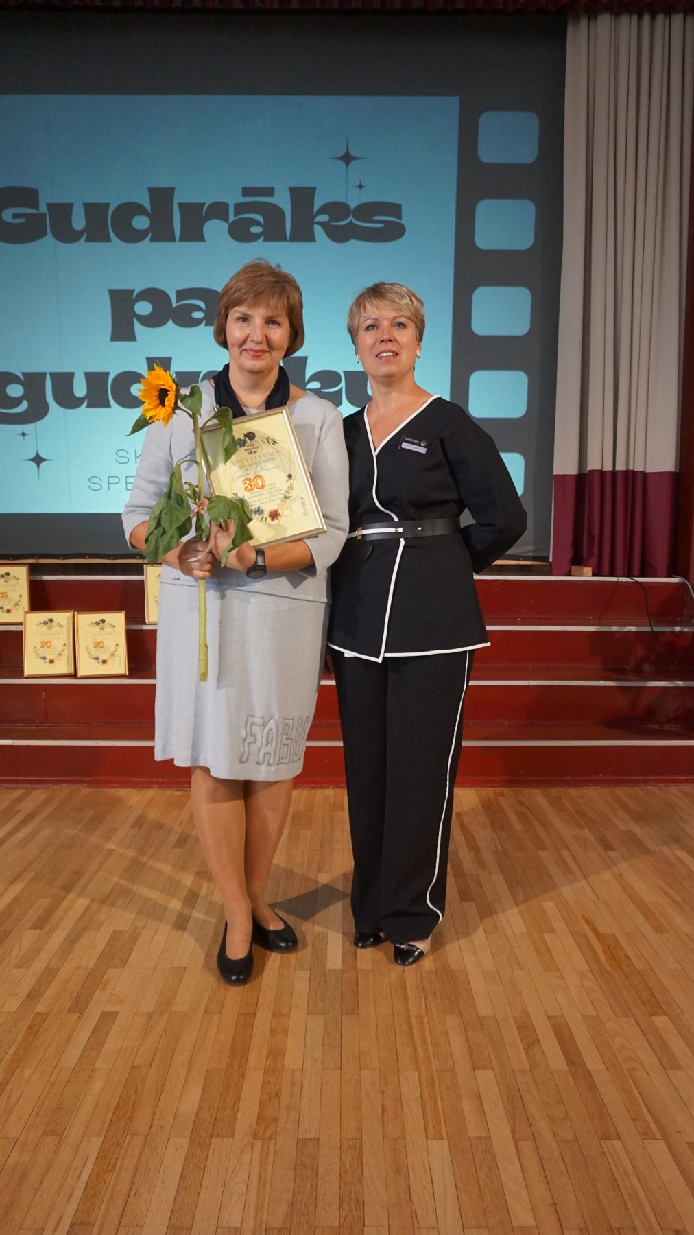 Pasākumā apsveikumu no skolas direktores saņēma skolotāji, kuri savu “pirmizrādi” kā skolotājs piedzīvojuši 40, 35, 30, 25, 20, 15, 10 un 5 gadus atpakaļ!