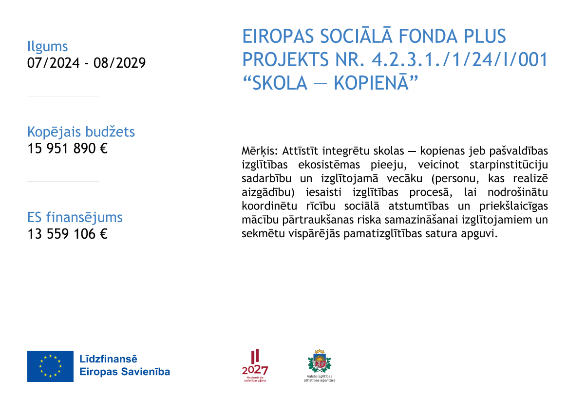Saldus vidusskola no šī mācību gada piedalās Eiropas sociālā fonda projektā “Skola kopienā”.