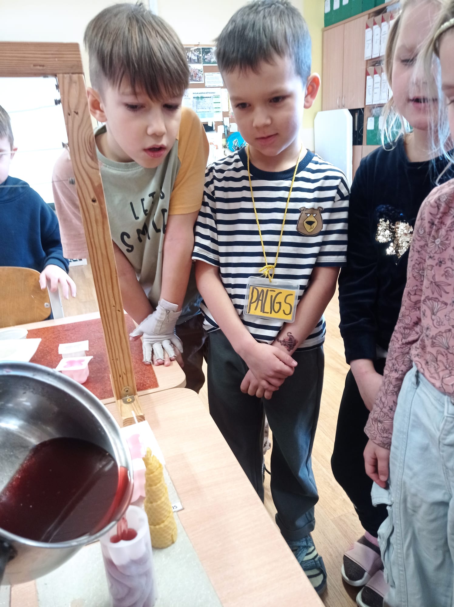 Kā arī izstādes, kurās skolēni demonstrēja pašu gatavotas sveces no otrreizējiem materiāliem.