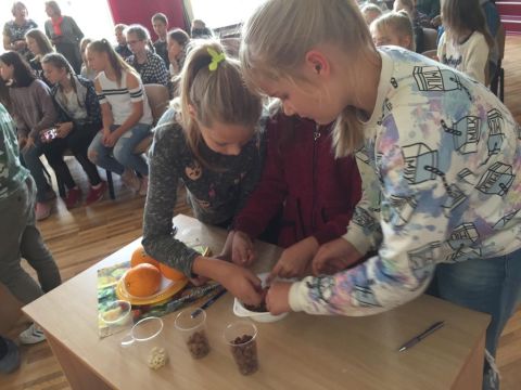 17.-21.septembrim 5.-12.klašu skolēniem notika Veselības nedēļa- šī gada tēma “Ēd, dzīvo, izdzīvo”. Nedēļu atklājām ar sulas spiešanas akciju “Atnes ābolus, augli vai dārzeni un pretī saņem sulas glāzi”, augļu bija tik daudz, ka pietika visai nedēļai svaigi spiestas sulas un palika pāri vēl ievārījumam, ko pagatavos mājturības stundās. 7.-9. klašu grupas gatavoja mājturības stundās veselīgas pusdienas un uzkodas, kā arī ceturtdien 8.-9. klases piedalījās interaktīvā nodarbībā, kuru vadīja biedrības “Esi brīvs” pārstāvis Edgars Caiks, par ar dažādu atkarību (smēķēšana, psihotropās vielas u.c.) profilaksi un lietošanas sekām. Savukārt vidusskolas klases vispirms noklausījās uztura speciālistes S.Kalnišas lekciju “Kas ir veselīgs uzturs”un tad viņas vadībā gatavoja veselīgus našķus. Nedēļu noslēdza 5.-6.klašu konkurss “Atpazīsti riekstus, augļus un dārzeņus”, kuru rezultātus paziņos 21.09.2018 rītā un olimpiskā vingrošana.