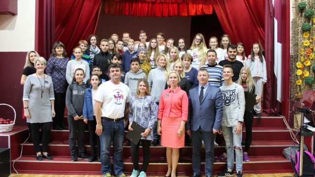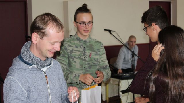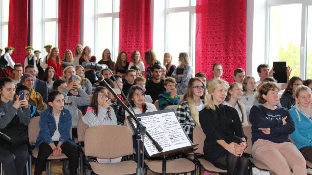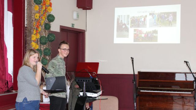 Ierodoties Saldus vidusskolā viņus sveica arī Saldus novada pašvaldības priekšēdētājs R.Doniņš, Saldus vidusskolas dziedošie un dejojošie skolēni ar draugiem no TDA “Meduslāse”.