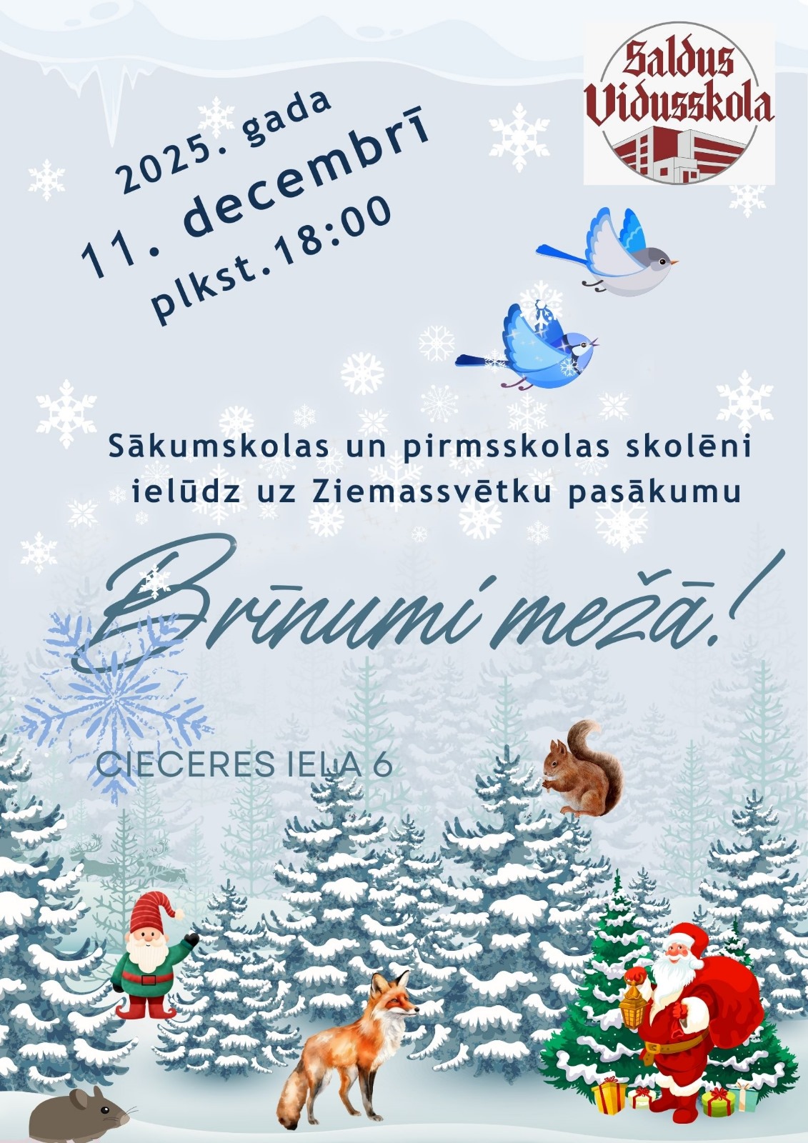 11. decembrī plkst.18.00 Ziemassvētku koncerts pirmsskolai un sākumskolai MS sporta zālē