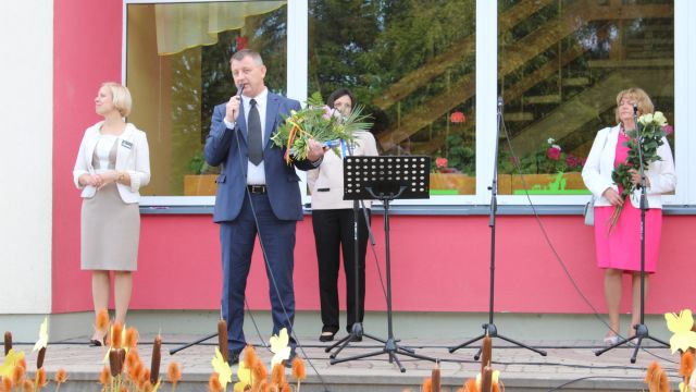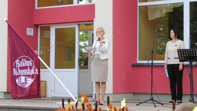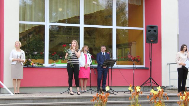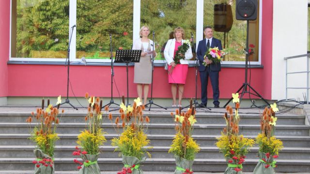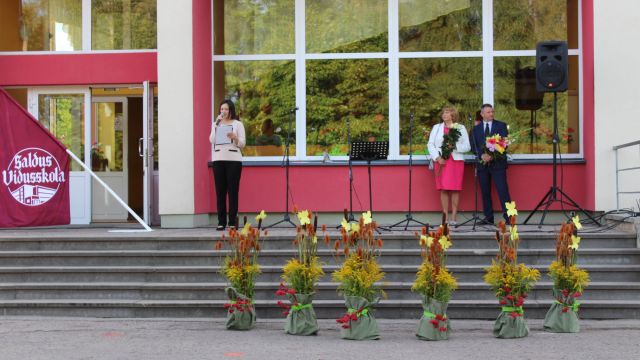Sveicienus visiem teica Saldus novada domes priekšsēdētājs R.Doniņš, izglītības pārvaldes vadītāja S.Levica, skolas prezidente Krista Pučko.